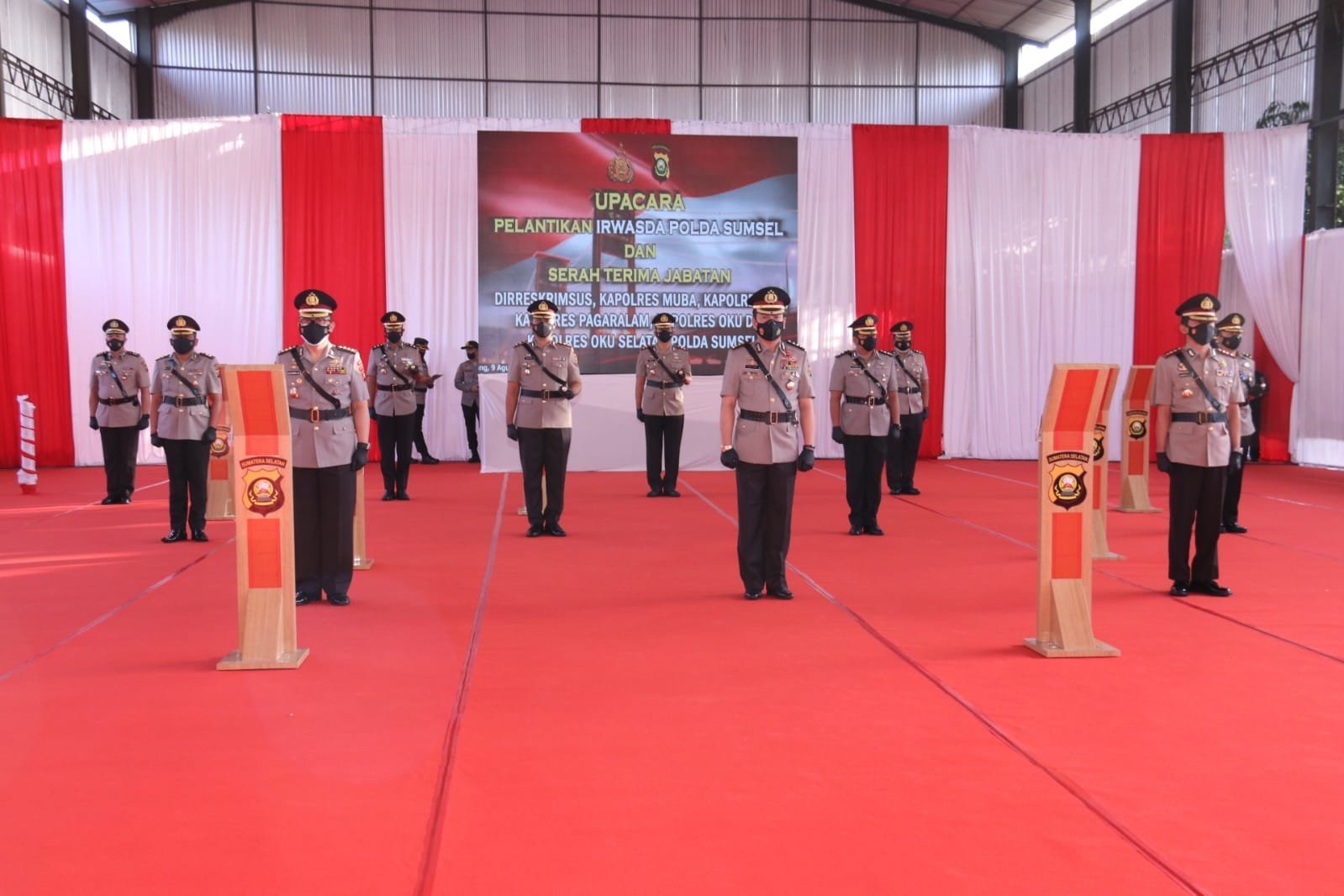 Serah terima jabatan (Sertijab) ini dilakukan langsung oleh Kapolda Sumsel Irjen Pol Prof Dr Eko Indra Heri S. MM di Lapangan Tenis Indor Paakri Palembang, Senin (09/08/2021).