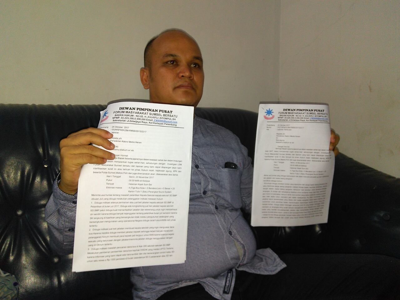 KAYUAGUNG I Massa yang mengatasnamakan diri tergabung dalam Forum Masyarakat Sumsel Bersatu (FMSB) pada 20 November 2017 mendatang berencana melakukan aksi demonstrasi di halaman Kantor Kejati Sumsel. Aksi tersebut dilakukan guna menuntut pihak kejaksaan segera memeriksa oknum kepala desa (kades) Talang Pangeran, Kecamatan Teluk Gelam, Kabupaten OKI yang diduga melakukan intimidasi terhadap warga serta dugaan penyalahgunaan wewenang dan jabatan dalam penggunaan dana desa maupun alokasi dana desa.