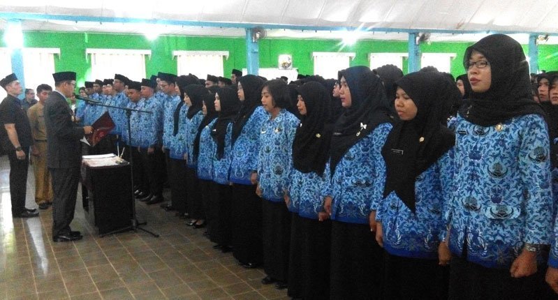 “Kami mewakili pemerintahan mengucapkan selamat atas pengangkatan ini, karena tidak mudah untuk lolos menjadi PNS, banyak saingan dan ujian yang harus dilalui. Maka dari itu, jangan sia-siakan kesempatan ini, bekerjalah dengan baik, jujur dan penuh tanggungjawab,” pesan Bupati saat menyampaikan pidatonya di hadapan ratusan PNS baru.
