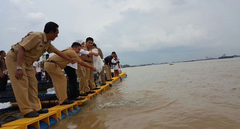 Pemerintah Kota Palembang melalui BP2K menebar sebanyak 3000 benih ikan lele di sungai musi.