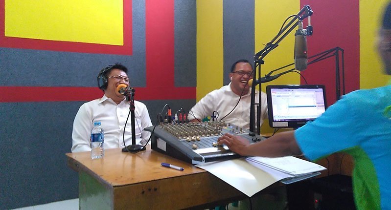 KAYUAGUNG I Ketua Komisi II DPRD OKI yang membidangi Perekonomian, Abdiyanto H Fikri, SH, MH dan Wakil Ketua Komisi III Bidang Pembangunan Made Indrawan, ST, MM menjadi penyiar sehari di Radio Inovasi, Rabu (1/3). Keberadaan dua wakil rakyat tersebut semata-mata untuk menyerap aspirasi masyarakat.