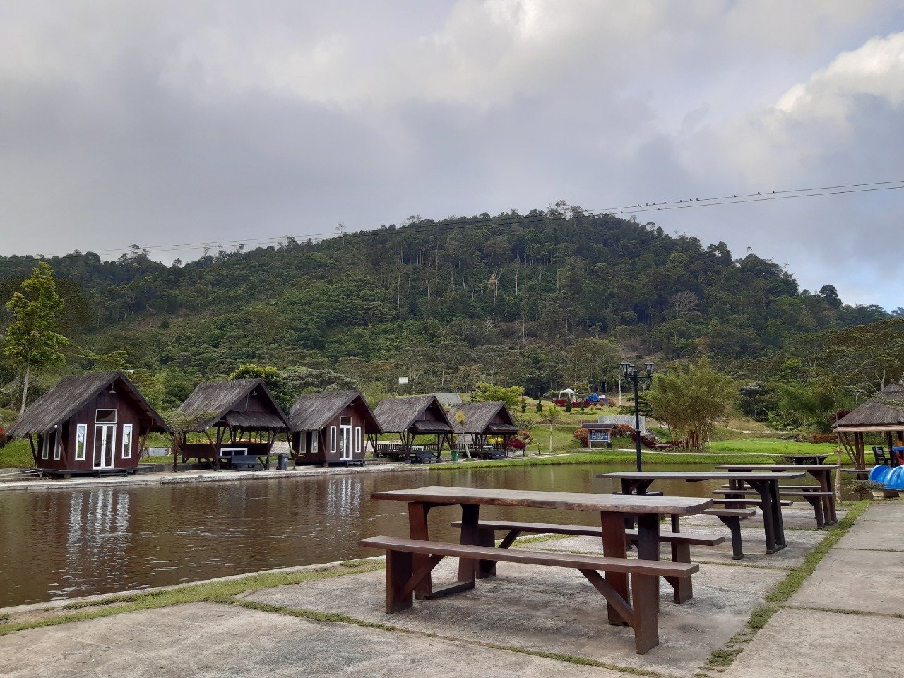 Saya lihat ke sisi lain, iringan musik terdengar cukup mengasyikkan, beberapa bendera dan umbul-umbul bermerek salah satu BUMN tampak berkibar. Family Gathering sepertinya jadi lokasi yang cocok. Apalagi ditambah dengan lintasan kawat baja untuk fasilitas Flying Fox melintas di tengah kolam. Bagi yang ingin mencicipi kendaraan khusus roda 4 berkeliling perbukitan juga disediakan. Ya, suasana petualangan di pegunungan juga ditawarkan ke pengunjung. Sangat mengasyikkan dan memanjakan. “Bah, aku yang orang sini aja belum pernah kesini. Bagus kali rupanya tempat ini. Besok kuajak anak biniku kesinilah,” teriak Dr. Darwis kegirangan.