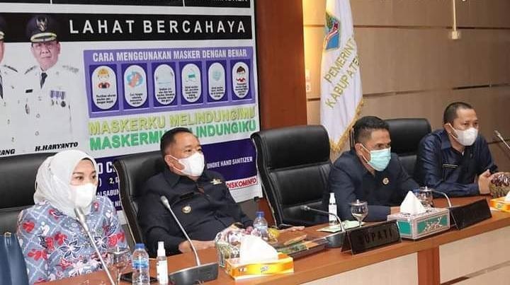 LAHAT – Bertepatan dengan Peringatan Hari Keluarga Nasional (Harganas) ke-28, Bupati Lahat, Cik Ujang SH dan Ketua TP-PKK Kabupaten Lahat Lidyawati Cik Ujang, S.Hut menerima Penghargaan Manggala Karya Kencana (MKK) dari Badan Kependudukan dan Keluarga Berencana Nasional (BKKBN) secara virtual melalui zoom meeting bertempat diruang Operation Room Sekretariat Pemerintah Kabupaten Lahat.