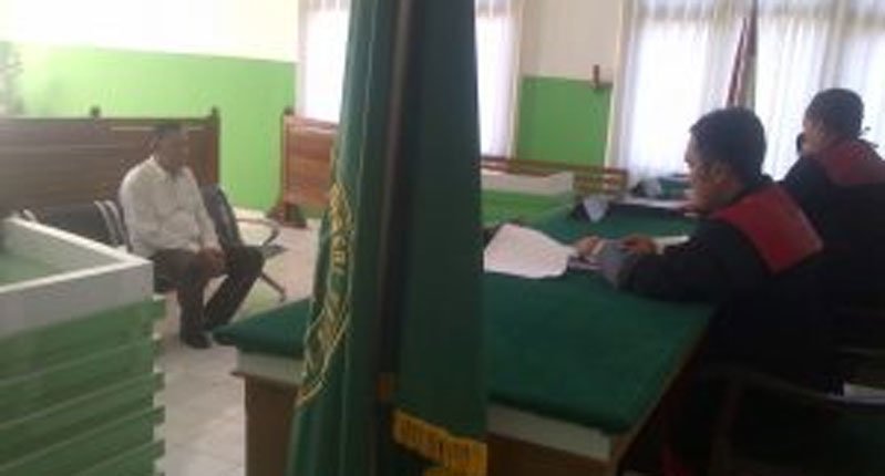 KAYUAGUNG I Anggota Badan Intelijen Negara (BIN) Gadungan, M Hatta (60), warga Lorok Pakjo, Kecamatan Ilir barat I Palembang tertunduk ketika majelis hakim Pengadilan Negeri Kayuagung menjatuhkan vonis 1,9tahun penjara terhadap terdakwa.