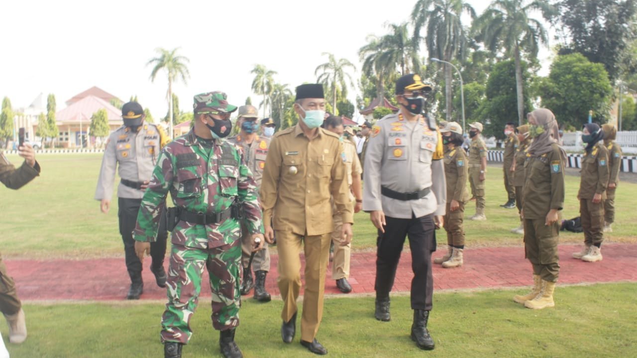 Kayuagung | Pemerintah Kabupaten Ogan Komering Ilir menggelar apel kesiapsiagaan bencana di halaman Kantor Bupati OKI dan diikuti oleh personel gabungan yang terdiri dari jajaran Pemkab OKI, TNI, Polri, Basarnas, BNPB dan PMI. Melalui kegiatan tersebut, seluruh elemen masyarakat mampu meningkatkan kewaspadaan dalam menghadapi bencana. (9/11/2020).