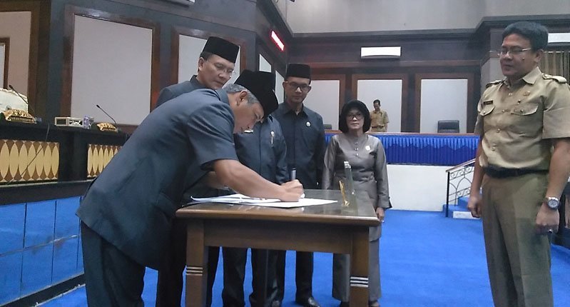 KAYUAGUNG I APBD OKI tahun 2017 sebesar Rp2,250triliun disahkan. Pengesahan anggaran tersebut ditandai dengan penandatanganan nota kesepahaman antara Bupati OKI H Iskandar, SE dengan Ketua DPRD OKI HM Yusuf Mekki di ruang paripurna DPRD OKI, Selasa (29/11).