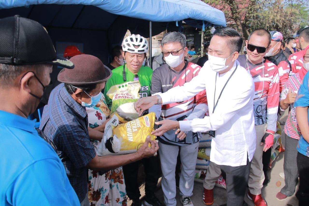 “Kalau hari hari biasa kita rutin bersepeda mendatangi tempat- tempat warga untuk menangkap aspirasi warga kita terkait keluhan mereka, tak terkecuali hari ini, kita sambil berolahraga bersepeda kita juga berbagi bagi yang terkena musibah,” tegasnya.