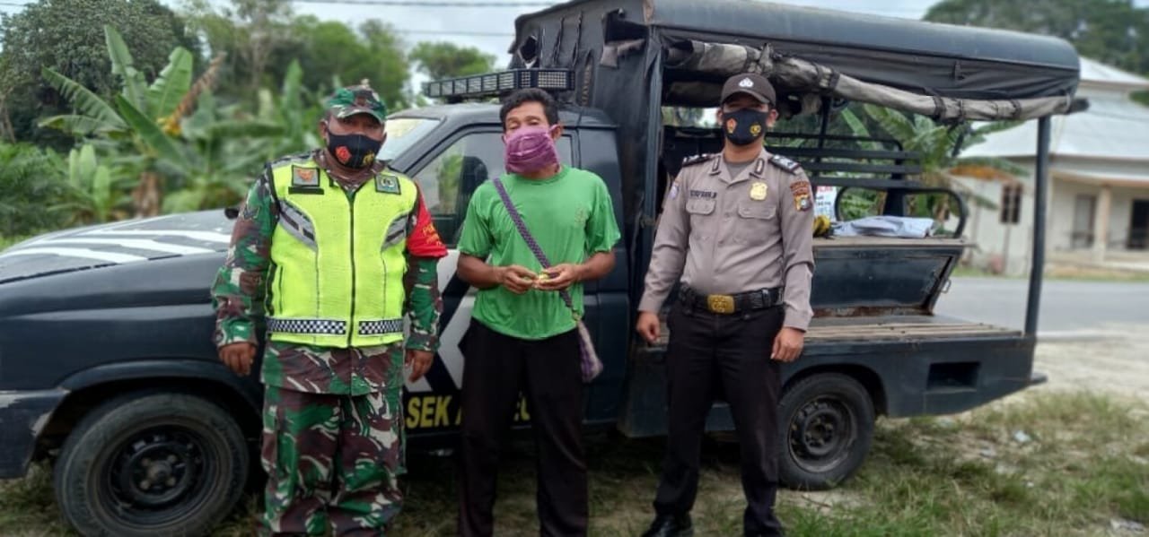 AIRGEGAS | Anggota Bhabinkamtibmas Desa Airgegas Polsek Airgegas Brigadir Syafran melaksanakan kegiatan Patroli 3M serta sosialisasi dan imbauan pencegahan penyebaran Covid-19 kepada warga di desa binaanya, Sabtu (24/10) siang.