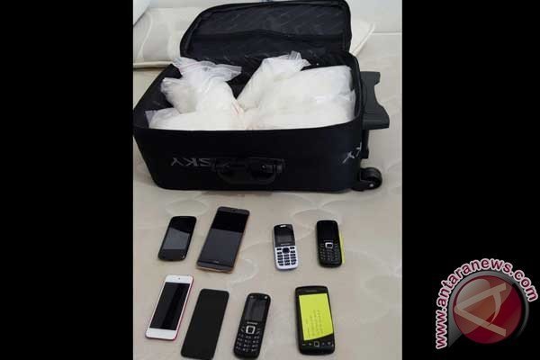 Badan Nasional Narkotika mengamankan barang bukti berupa sabu yang disimpan dalam koper milik warga negara Taiwan berinisal LC dan sejumlah telepon genggam dalam operasi yang dilakukan di apartemen Mediterania, Jakarta, Senin (1/8/2016). (ANTARA/ Susylo Asmalyah)