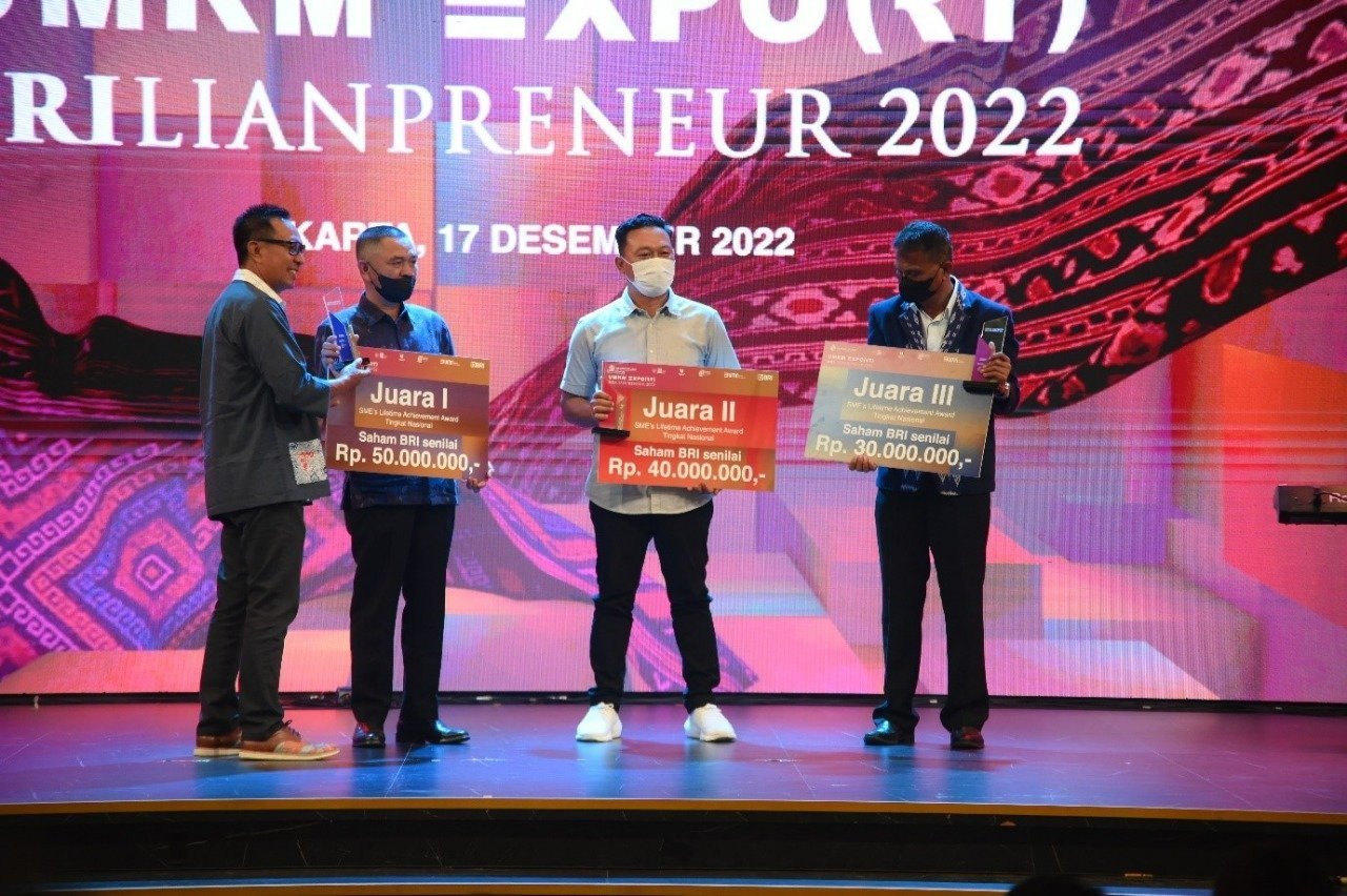 Pada Closing Ceremony UMKM EXPO(RT) BRILIANPRENEUR 2022, Direktur Bisnis Kecil dan Menengah BRI Amam Sukriyanto memberikan langsung apresiasi SME’s Lifetime Achievement Award 2022 tingkat nasional kepada 3 pemenang level nasional. Sementara pemenang di level regional akan diberikan langsung oleh Regional Office (RO) BRI setempat.