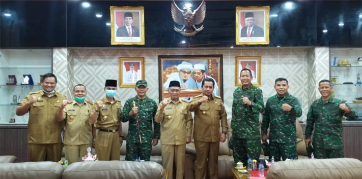 PANGKALAN BALAI I Bupati Banyuasin H.Askolani SH MH didampingi Wabup H Slamet diruang kerjanya, Senin (27/7/2020) menerima kunjungan silaturahmi Danrem 044 Gapo Brigjen TNI Jauhari. Sinergi kedua lembaga ini tentu akan berdampak positif dalam menjalankan tugas dan fungsi masing-masing, baik dalam pembangunan, keamanan maupun pelayanan masyarakat.
