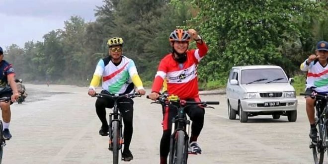Bupati Bangka beserta jajaran di wilayah Kabupaten Bangka bersepeda sembari menikmati keindahan alam sepanjang tepian pantai Dusun Pejem Desa Gunung Pelawan Kecamatan Belinyu, Sabtu (26/9/2020). Kegiatan ini juga bertujuan untuk menyapa masyarakat sekitar serta mempromosikan potensi wisata yang ada di Kabupaten Bangka.