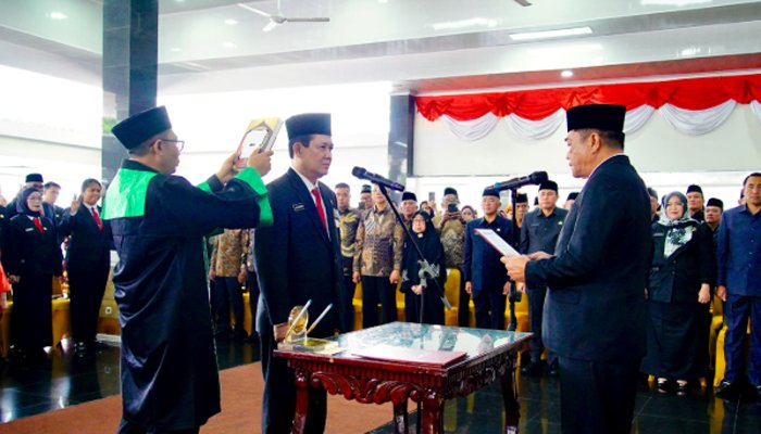 Pelantikan dan pengambilan sumpah Pejabat ini dilakukan di Pendopoan Griya Bumi Serasan Sekate, Kamis (12/3/2026).