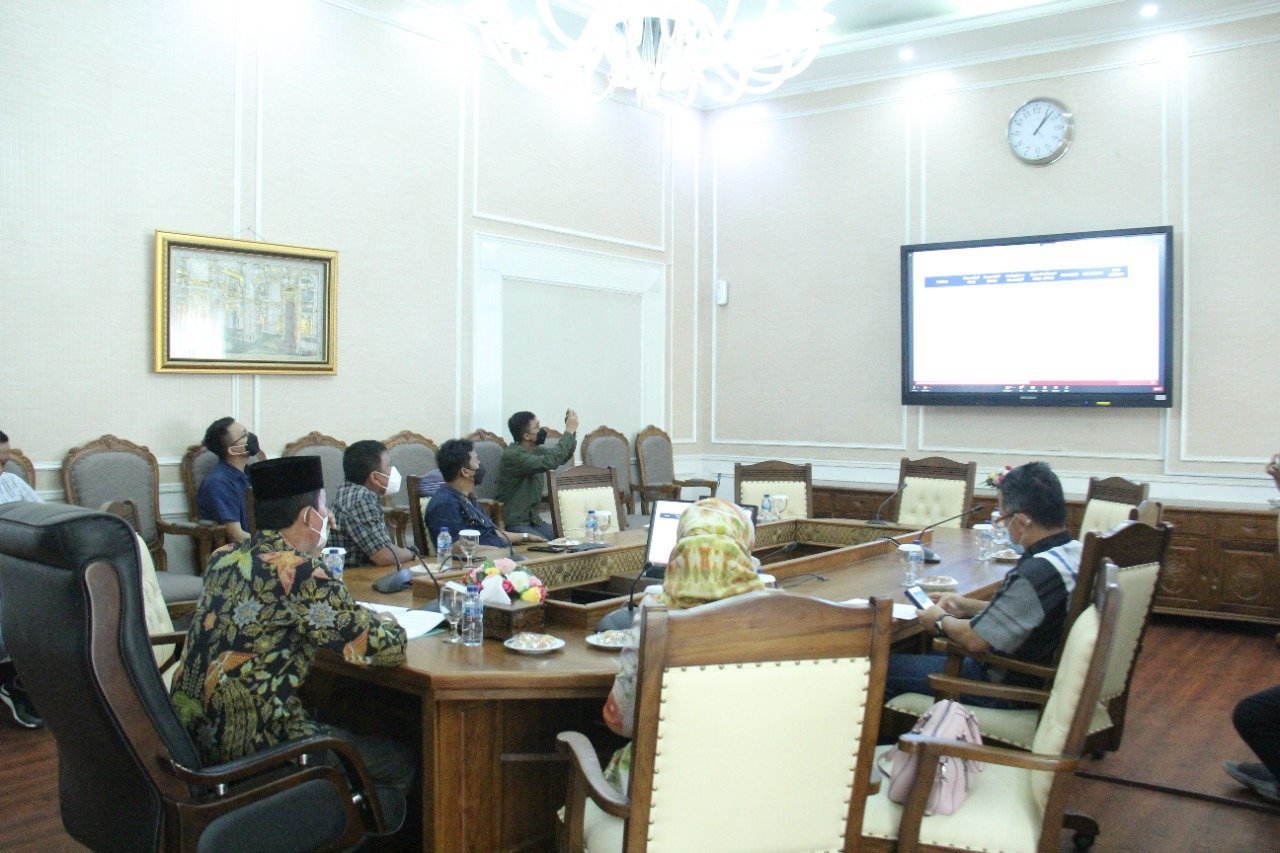PALEMBANG | Walikota Palembang H.Harnojoyo, Minggu (13/2/2022) sore,rapat bersama Menteri Koordinator Bidang Perekonomian Arilangga Hartanto melalui Virtual membahas perkembangan Covid 19 di rumah  dinasnya.