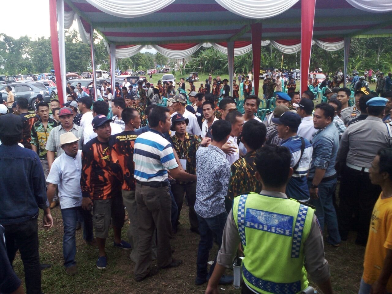 Sementara dibawah panggung kursi yang sebelumnya tempat duduk tim pemenagan beberapa terlempar keatas. Antara tim pemenangan mulai memanas, kejadian diredam oleh aparat keamanan Polisi dan TNI dilokasi.