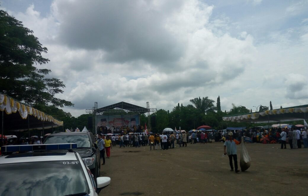 KAYUAGUNG I Diduga lantaran kurangnya modal untuk membayar massa yang berada di Kecamatan SP Padang Kabupaten OKI, Sebanyak 500 massa yang hendak berangkat keacara deklarasi bakal calon pasangan Bupati OKI dan Wakil Bupati OKI, Azhari – Qomarus (Aqor), yang diselenggarakan di taman segi tiga mas terpaksa dibatalkan.