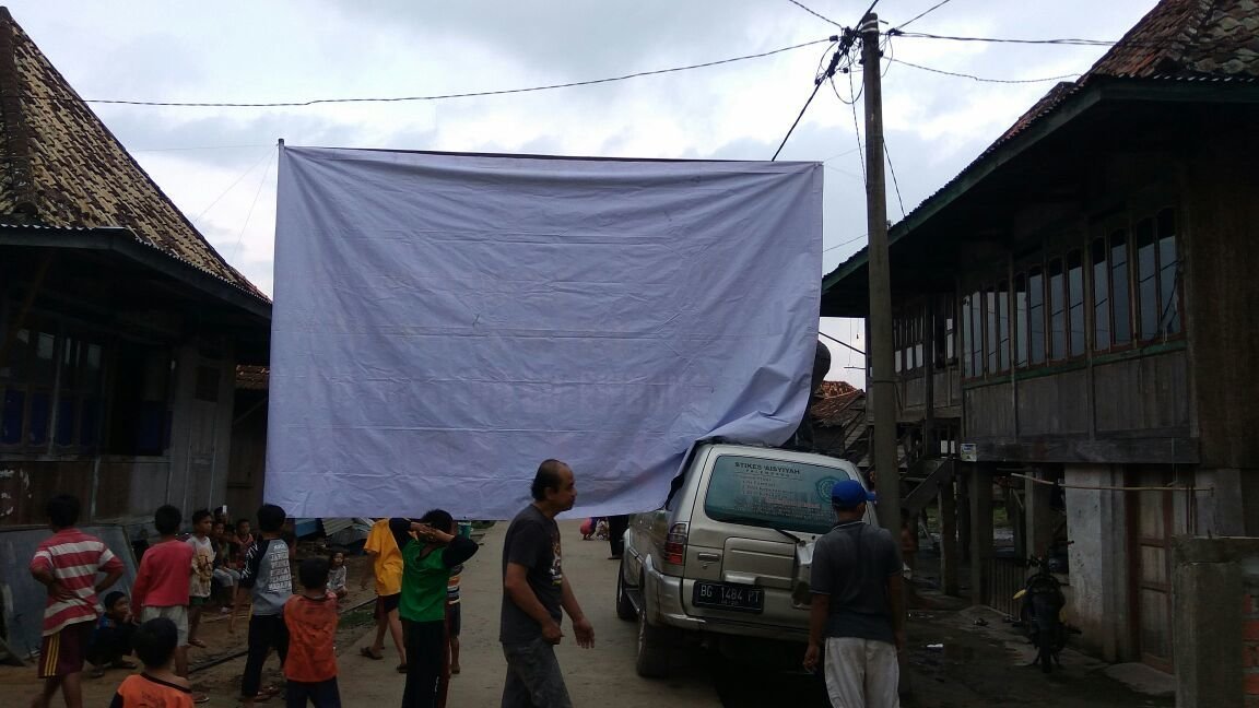 Pemasangan MMT (layar putih) yang membelah jalan utama desa menarik warga untuk menyaksikan persiapan pemutaran film “Meniti 20 Hari” (M20H) di desa itu.  Tak tanggung-tanggung, Sang Sutradara film M20H, Ari Musbarianto turun langsung ke lokasi untuk ikut mendesain lokasi guna nonton bareng (nobar) di desa yang menjadi lokasi shoting film M20H tersebut.