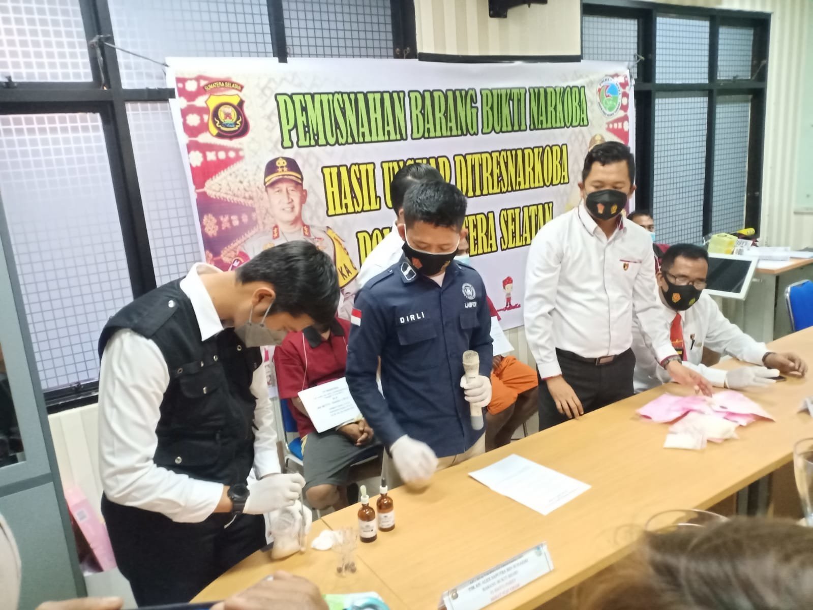 Kabag Bin Opsnal Direktorat Reserse Narkoba Polda Sumsel Kompol Dwi Utomo didampingi Kabid Humas Polda Sumsel Kombes Pol Drs Supriadi MM yang diwakili Kompol Suryadi Hasan mengatakan, pemusnahan barang bukti ini sudah sesuai ketentuan dan perintah pengadilan sebagian barang bukti sudah disisikan untuk sidang di Pengadilan nanti.