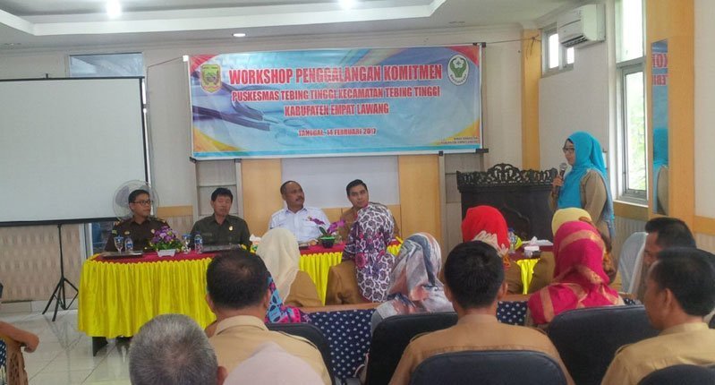 EMPAT LAWANG I Dinas Kesehatan (Dinkes) Empat Lawang, Sealasa (14/2) menggelar kegiatan penggalangan komitmen akreditasi seluruh Pusat Kesahatan Masyarakat (Puskesmas) di Bumi Saling Keruani Sangi Kerawati ini. Sebab, pemerintah telah menargetkan seluruh Puskes ditahun 2019 wajib terakreditasi. Kalau tidak, maka tidak bisa kerjasama dan menerima dana Jaminan Kesehatan Nasional (JKN).