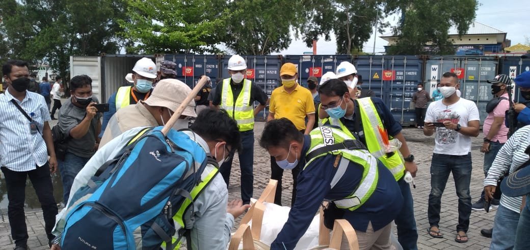 PANGKALPINANG – Tim Direktorat Jenderal Mineral dan Batu Bara (Ditjen Minerba) Kementerian ESDM didampingi Ditreskrimsus Polda Babel melakukan pemeriksaan delapan kontainer mineral ikutan Zirkon milik PT. Cinta Alam Lestari (CAL) di Pelabuhan Pangkalbalam, Minggu (4/4/2021) siang.