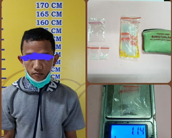 Kemudian satu dompet emas warna hijau toska berisikan tiga paket shabu berat brutto 1,14 gram dan satu bal plastik klip transparan kosong. (Abdus)