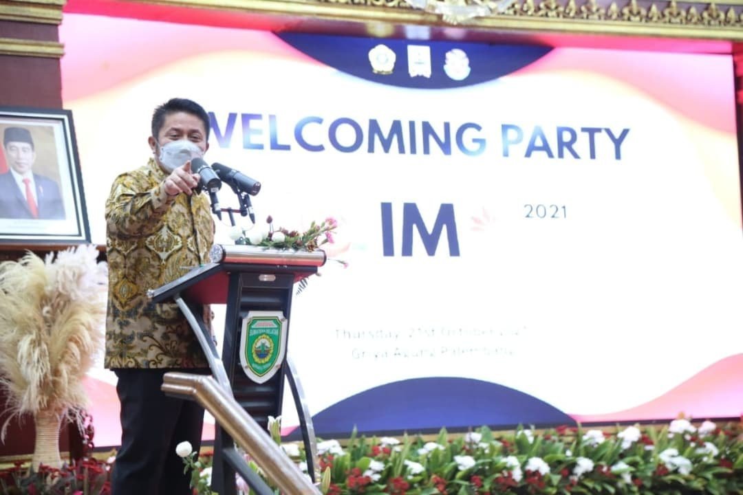 PALEMBANG – Gubernur Sumsel, H Herman Deru hadiri Welcoming Party Indonesian International Medical Olympiad (IMO) yang digelar Fakultas Kedokteran Universitas Sriwijaya (Unsri) di Griya Agung Palembang, Kamis (21/10/2021) malam.