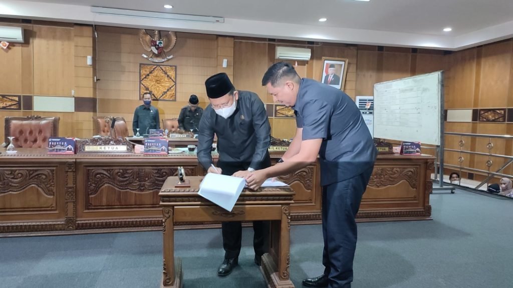Ketua DPRD OKU, Ir H Marjito Bachri Menandatangani SK DPRD OKU tentang Perubahan komposisi AKD periode 2022 – 2024.
