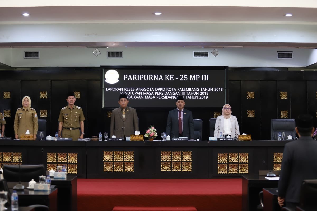 Dalam paripurna ke 25 masa persidangan (MP) ke III, yang dipimpin Wakil Ketua DPRD Palembang, H Muliadi ini mengagendakan laporan hasil reses ke III sekaligus penutupan paripurna 2018 dan pembukaan paripurna tahun 2019.
