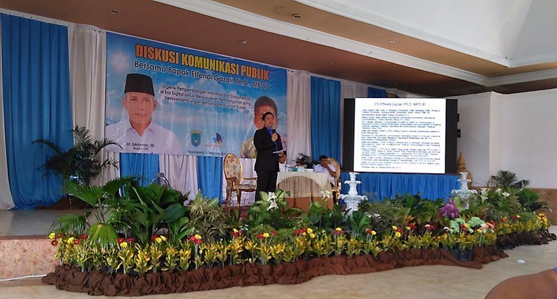“Berpikir jernih disini ialah senang melihat orang lain bahagia, bukan sebaliknya. Bayangkan saja saat ini sekitar 82% keterbukaan informasi berasal dari televisi dan sisanya dari media sosial,” kata Effendi Gazali dalam diskusi komunikasi publik dengan mengambil tema “urgensi pengembangan informasi dan dokumentasi di era digital untuk mewujudkan pembangunan yang berkesinambungan terhadap pelayanan publik” di Pendopo Kabupatenan Kayuagung, Kamis (15/12).