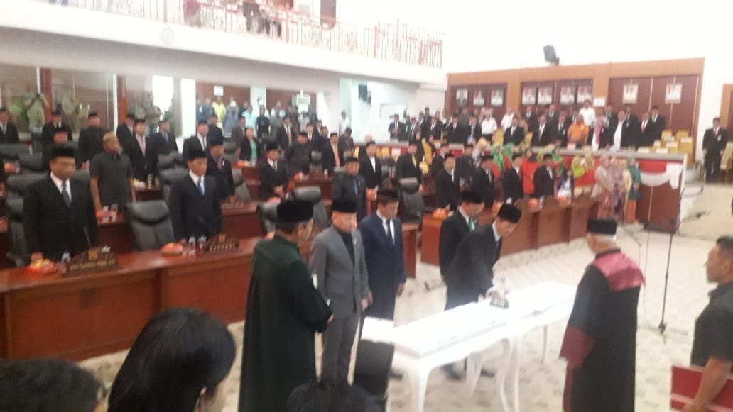 PANGKALPINANG | Empat Pimpinan DPRD Provinsi Kepulauan Bangka Belitung masa jabatan 2019-2024 resmi dilantik setelah pengucapan sumpah/janji jabatan di Ruang Paripurna DPRD Babel, Rabu (16/10/2019).