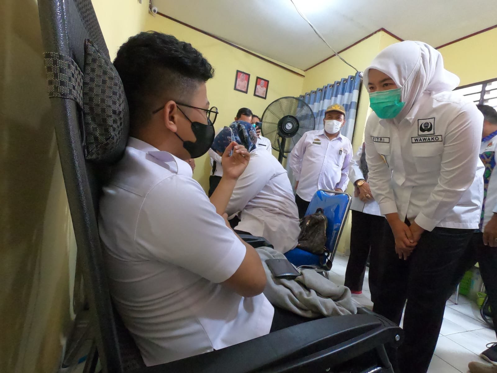 PALEMBANG | Wakil Walikota Palembang Fitrianti Agustinda yang juga Ketua Palang Merah Indonesia (PMI) Kota Palembang, Rabu (23/3/2022) hadir langsung di tengah masyarakat yang melakukan donor darah di Kecamatan Ilir Timur (IT)1 Palembang.
