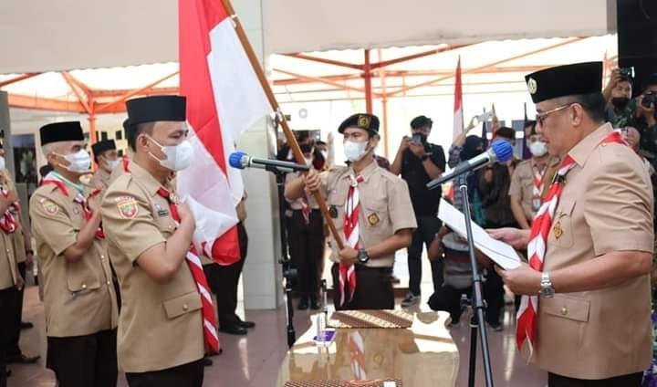 pramuka lahat dalam kesempatan ini menyampaikan, Pelantikan pengurus kali ini masih dibayangi dengan suasana prihatin akibat pandemi covid-19 yang belum usai. Kita masih terus melaksanakan protokol kesehatan dengan ketat, khusunya pelaksanaan 5 M, untuk menghindari mobilitas dan mengindari kerumunan. Pramuka harus mampu memposisikan diri dalam upaya penanggulangan pandemi covid-19 ini,” ujar Cik Ujang