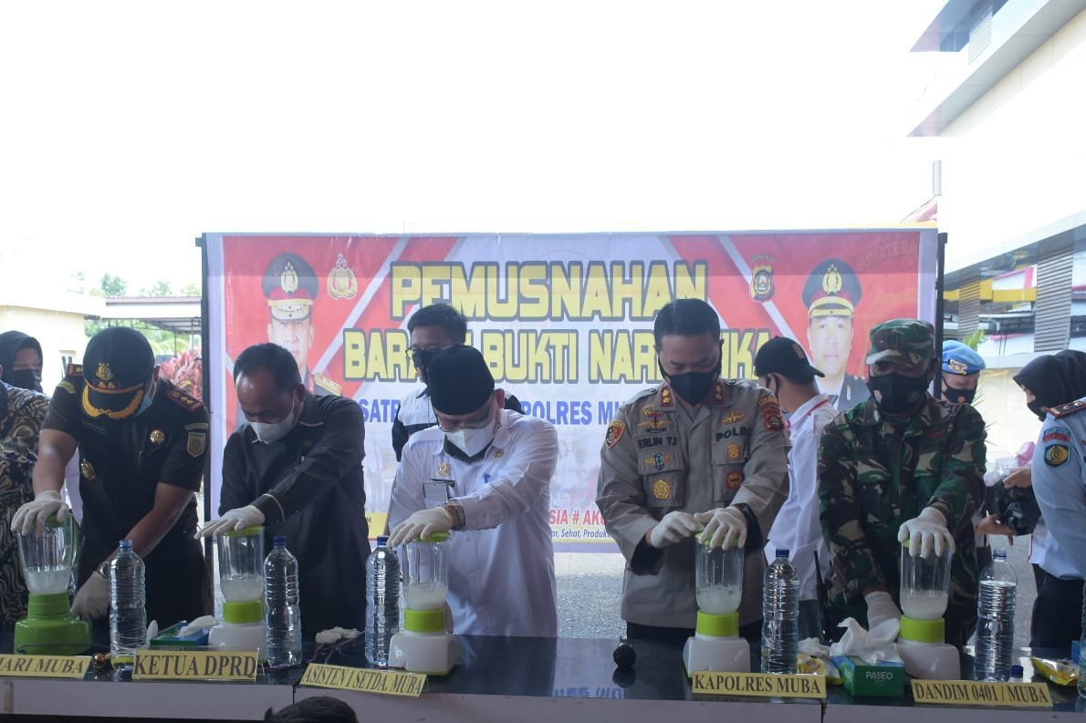 Sementara Kapolres Muba AKBP Erlin Tangjaya SH SIK menyampaikan, narkoba merupakan salah satu zat adiktif yang berbahaya jika dikonsumsi. Narkotika ini hal yang sangat membahayakan bagi generasi penerus. Dengan pemusnahan shabu tersebut, artinya sudah menyelamatkan anak bangsa dari bahaya penyalahgunaan narkotika.