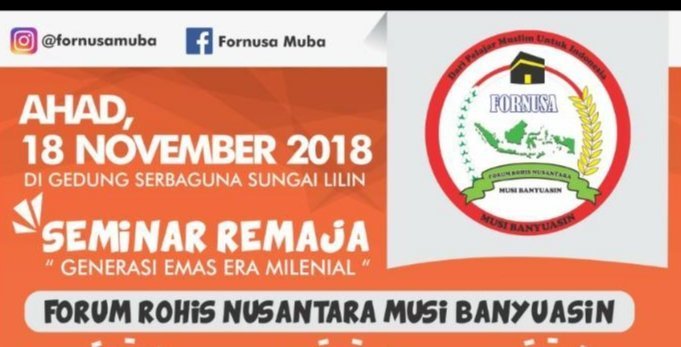 Melihat realitas yang ada, para remaja seperti disibukkan bergaya hidup mendekati hedonis. Meminimalisir hal-hal tersebut Forum Rohis Nusantara Musi Banyuasin (FORNUSA MUBA) adakan Seminar remaja muslim.