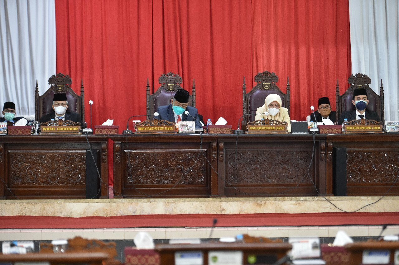 Palembang | 9 Fraksi DRPD Prov. Sumsel sampaikan pemandangan umumnya terhadap Raperda Perubahan APBD TA 2021 pada Rapat Paripurna XXXVII (37) lanjutan (Sabtu, 25/9), dipimpin oleh Wakil Ketua DPRD Provinsi Sumsel H.M. Giri Ramanda N Kiemas, SE, MM, didampingi wakil ketua Kartika Sandra Desi, SH, dan Bapak H. Muchendi M, SE, Wakil Gubernur Sumsel Ir. H. Mawardi Yahya, Perwakilan OPD dan tamu undangan lain secara langsung dan virtual.