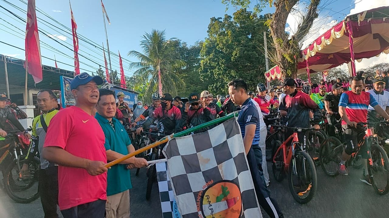 Kegiatan pembukaan Fun Bike Semarak Hari Bhayangkara di pimpin langsung oleh Kapolres Bangka Barat AKBP Agus Siswanto SH., SIK., MH., di lapangan gelora Mentok