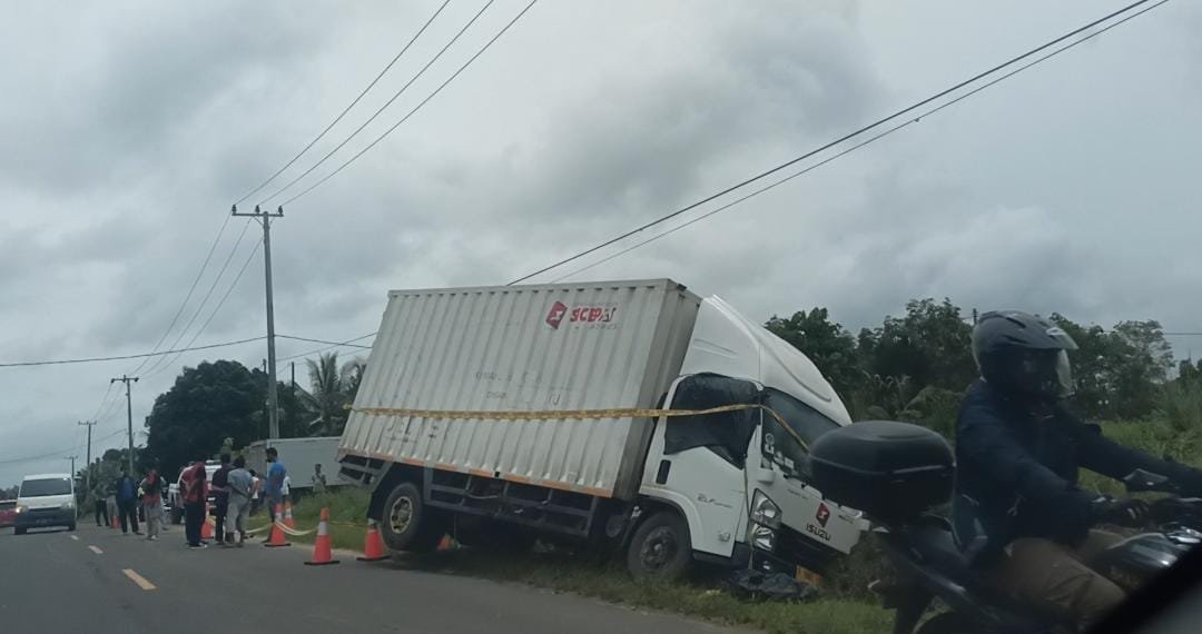 DT ( 38 ) warga Desa Mayang, Kecamatan Simpang Teritip tewas akibat gagal menyalip truk Fuso hingga tertabrak Mobil Isuzu Light Truck Box warna putih No.pol B-9965 FXV yang disopiri RE.