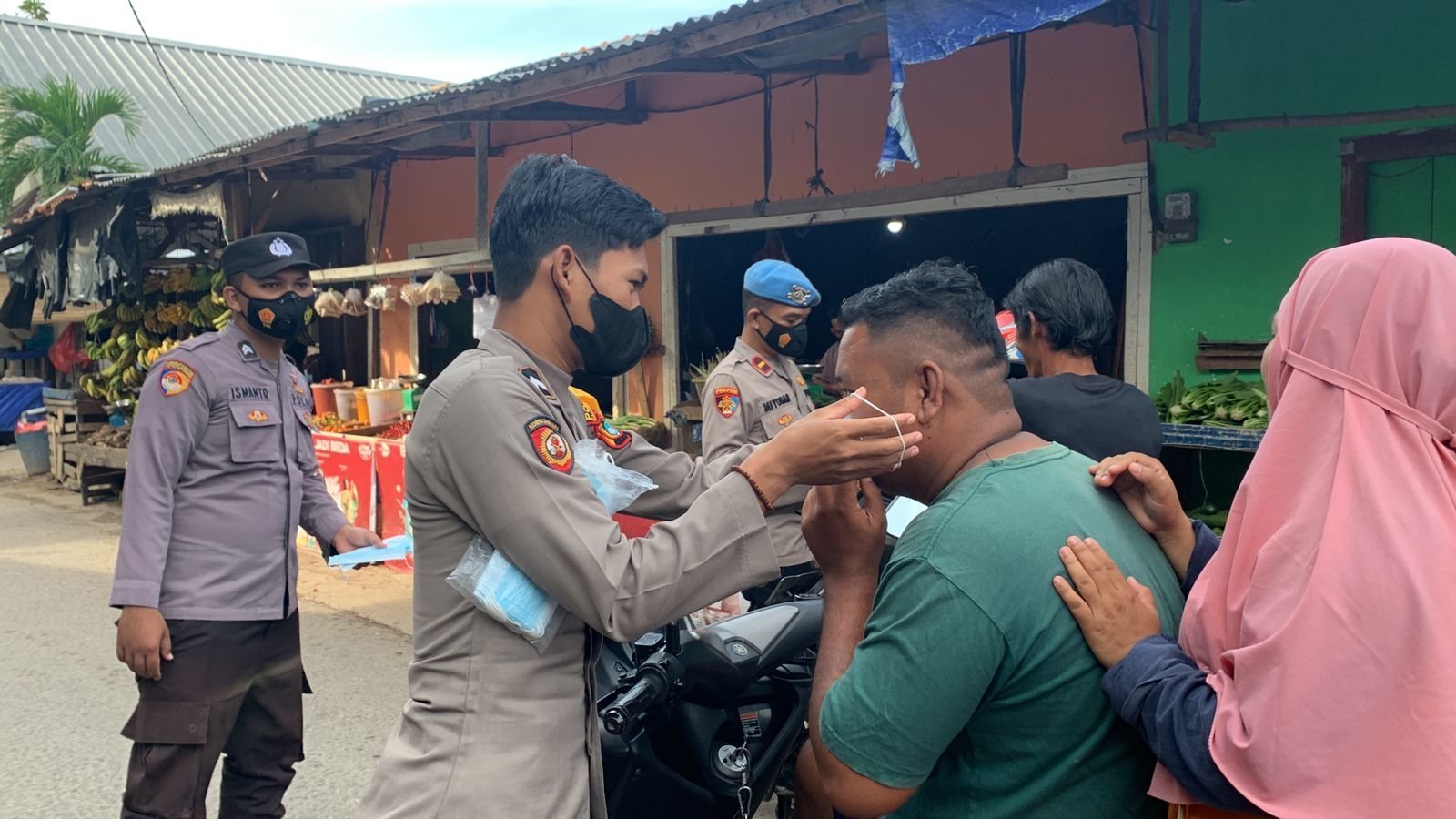 “Kegiatan ini kita melakukan himbauan dan bagikan masker geratis di tempat-tempat keramaian, seperti di pasar Mentok yang di lakukan oleh personil yang terlibat Operasi Aman Nusa II ini,” sebut Kabag Ops.