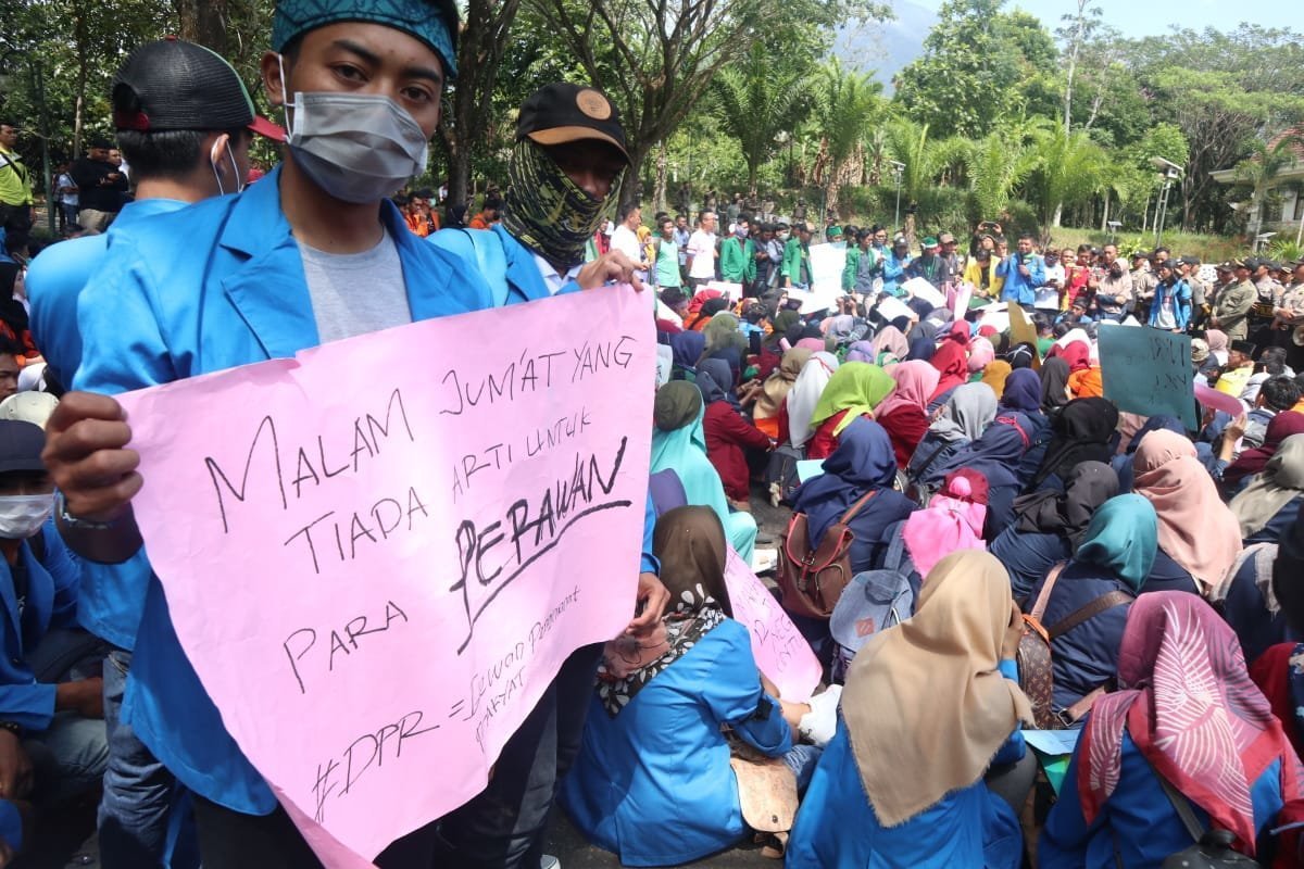 Dalam orasinya para mahasiswa menyampaikan bahwa RKUHP dan UU KPK dinilai refresif dan tidak masuk akal serta banyak dirasa tidak masuk akal.
