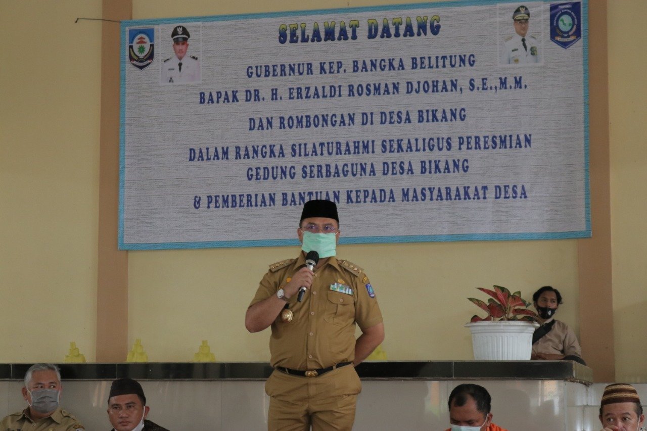 Ajakan ini disampaikan Gubernur Kepulauan Bangka Belitung, Erzaldi Rosman di sela-sela kegiatan silaturahmi sekaligus peresmian Gedung Serba Guna (GSG) Desa Bikang, Kecamatan Toboali, Kabupaten Bangka Selatan, Selasa (30/3/21).