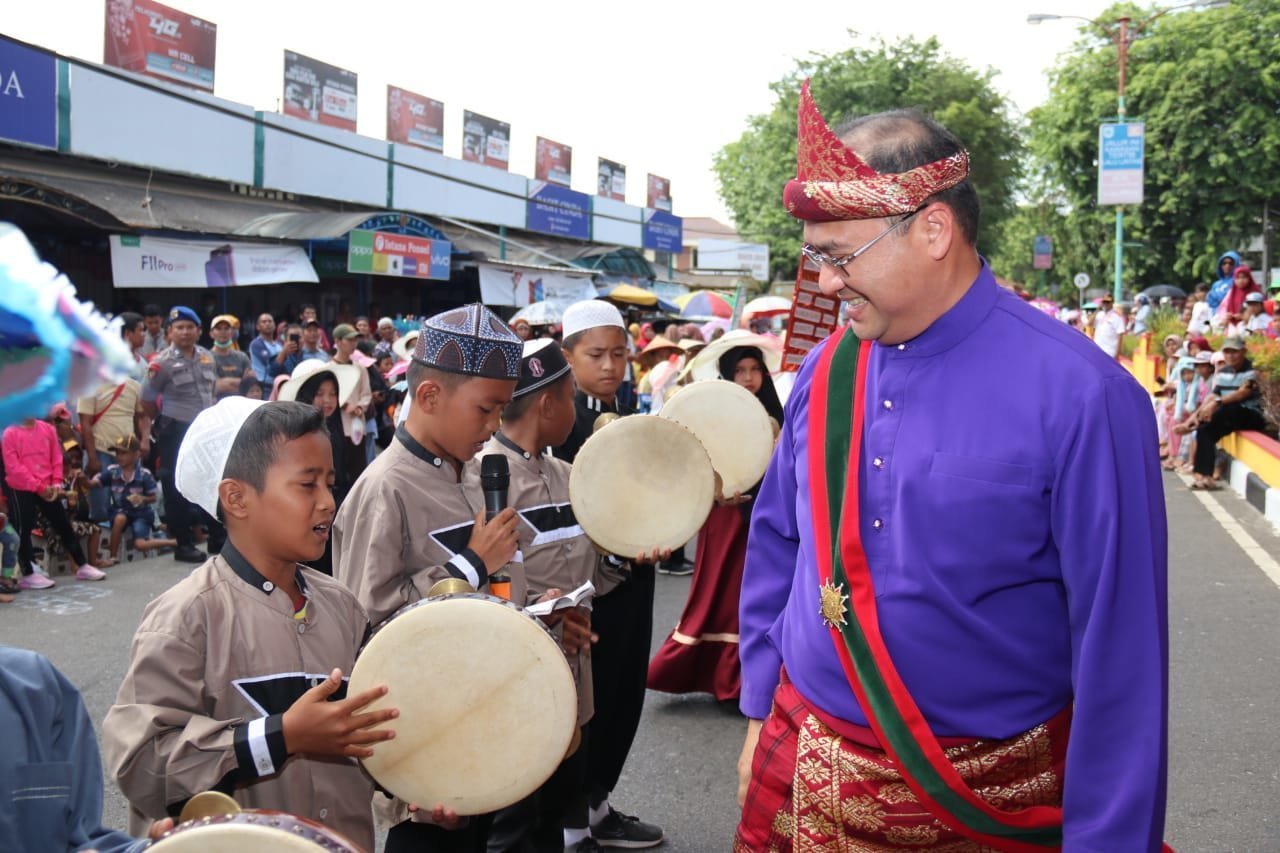 Pangkalpinang | Gubernul Babel Erzaldi Rosman didampingi Wagub Abdul Fatah serta Forkopimda Babel menyambut hangat peserta karnaval HUT RI yang melintasi panggung kehormatan pada Sabtu (24/8/2019).
