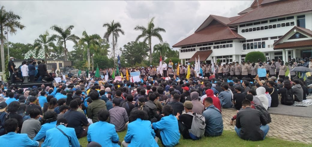 Kantor Gubernur Babel menjadi target lokasi utama untuk menyampaikan aspirasi para pengunjuk rasa yang terpantau berjumlah ratusan orang dengan membawa berbagai atribut spanduk yang menyuarakan rasa kekecewaan kepada para wakil rakyat di Gedung Senayan yang justru kebijakannya dalam merumuskan dan mengesahkan UU Cipta Kerja dinilai tidak memihak kepada rakyat khususnya bagi kaum buruh.