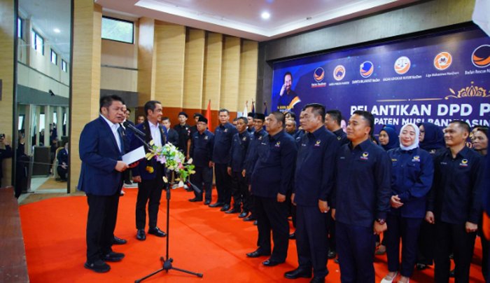 Pelantikan Pengurus DPD Nasdem Muba ini dilakukan oleh Ketua Dewan Pimpinan Wilayah (DPW) Partai NasDem Provinsi Sumatera Selatan, yang juga Gubernur Sumsel, Dr H Herman Deru, di Gedung Dharma Wanita Sekayu, Minggu (28/9/2025).