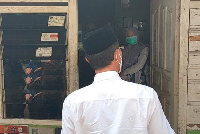 PALEMBANG | Wali Kota Palembang H Harnojoyo menyambangi satu warga yang bekerja sebagai sekuriti di RS Fatimah Palembang yakni Mega (35) yang sedang menjalani isolasi mandiri COVID-19 di Lr Sawah, Kelurahan 36 Ilir, Kecamatan Ilir Barat II Palembang.
