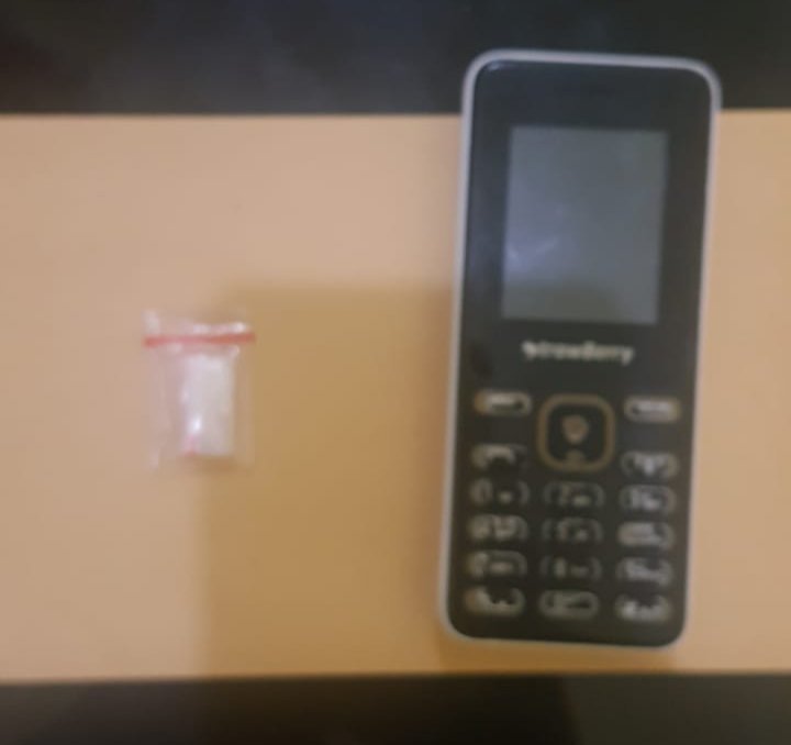 Dari tangan tersangka polisi turut mengamankan barang bukti berupa 1 paket kecil yang berisi kristal warna putih di duga narkotika jenis sabu dan 1 unit Handphone Merk Strawberry warna hitam putih.