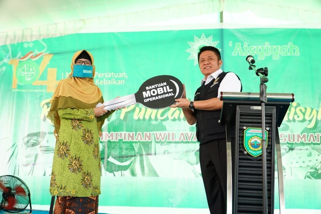 PALEMBANG – Guna menunjang kelancaraan koordinasi dan operasional pada organisasi Pimpinan Wilayah Aisyiyah Sumsel, Gubernur Sumsel H.Herman Deru memberikan bantuan satu unit kendaraan operasional. Bantuan tersebut diserahkan Gubernur HD saat menghadiri milad Aisyiyah ke-104 sekaligus peresmian Busthanul Afthal Aisyiyah Utama Palembang, Selasa (25/5/2021) pagi.