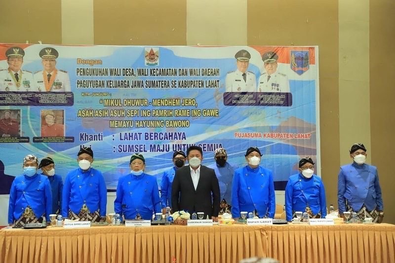 Lahat – Dalam rangkaian kunkernya ke Kabupaten Lahat, Sabtu (5/3), Gubernur Sumsel H. Herman Deru melakukan Pengukuhan Wali Desa, Wali Kecamatan dan Wali Daerah Paguyuban Keluarga Jawa Sumatera se Kabupaten Lahat di Hotel Grand Zuri.