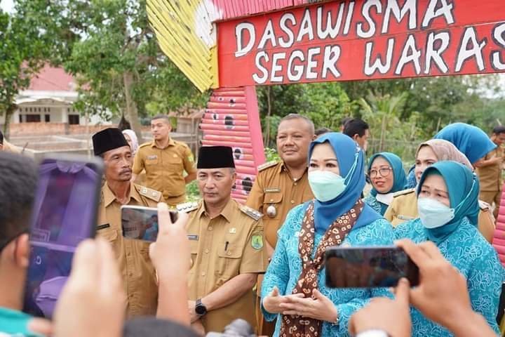 Dalam rangkaian Kunjungan Kerja TP. PKK Provinsi Sumatera Selatan Dalam Rangka Penilaian 10 Program Pokok PKK Tingkat Provinsi Sumatera Selatan di Kabupaten Musi Banyuasin di Desa Sri Mulyo Kecamatan Tungkal Jaya turut dihadiri Wakil Ketua TP PKK Provinsi Hj Fauziah Mawardi Yahya, Danramil Tungkal JayaKapolsek Tungkal Jaya, dan beberapa Kepala OPD Muba. (Endang S)