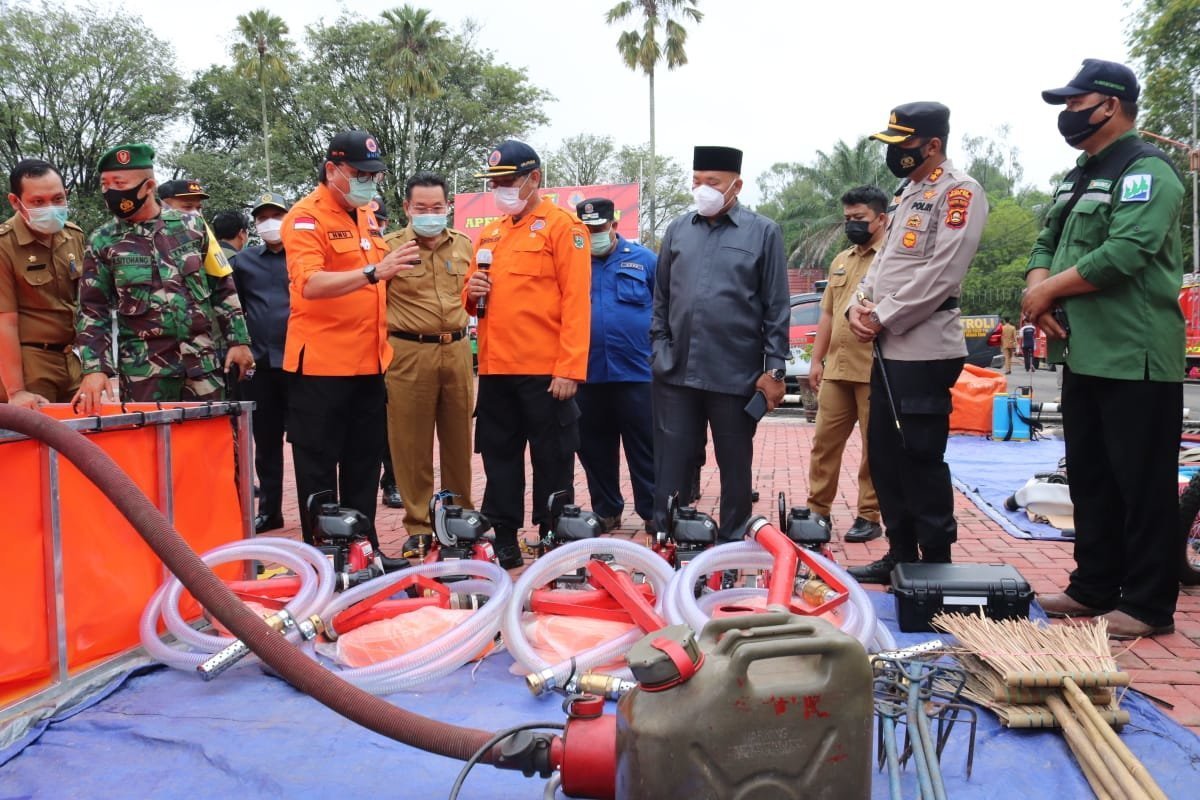Plh Bupati Muara Enim Dr H Nasrun Umar SH MM (HNU) menyampaikan, Kegiatan apel yang dilakukan saat ini guna mengevaluasi dan menginventarisir kekuatan personel dan peralatan yang akan digunakan untuk mengantisipasi dan penanggulangan kesiapsiagaan dalam menghadapi bencana tahunan kebakaran hutan dan lahan di Kabupaten Muara Enim.
