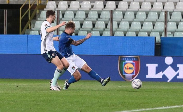 ITALIA I Striker Lazio Ciro Immobile mencetak satu gol dalam kemenangan Italia atas Irlandia Utara. Italia menang 2-0 pada laga perdana Grup C kualifikasi Piala Dunia 2022 zona Eropa di Ennio Tardini, Parma, Jumat (26/3) dini hari WIB. Kemenangan ini didedikasikan untuk Daniel Guerini dan keluarga.